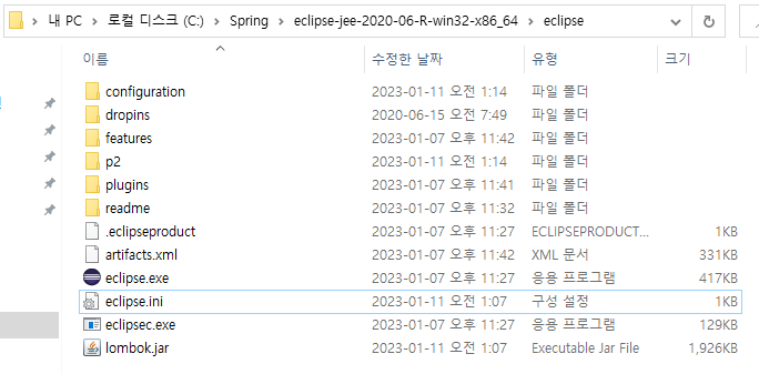 - IDE가 설치되어있는 경로를 들어가면 .ini파일이 있다. (eclipse.ini)